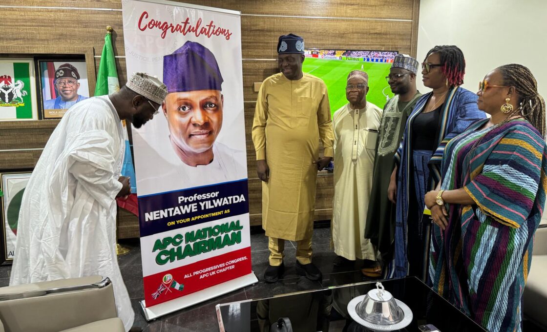 A delegation from the United Kingdom chapter of the All Progressives Congress (APC) on Tuesday, paid a congratulatory visit to the new National Chairman of the party, Professor Nentawe Goshwe Yilwatda, at the APC National Secretariat in Abuja.