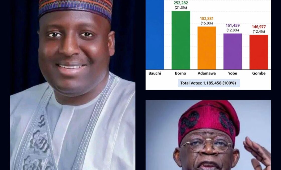 The outcome was not accidental: it was strategic. When the votes were counted, Bauchi emerged as the largest contributor to the Tinubu/Shettima tally in the Northeast, delivering 316,694 votes out of the region’s 1,185,458 total, representing 26.7% of the entire Northeast votes — the highest from any state in the zone.